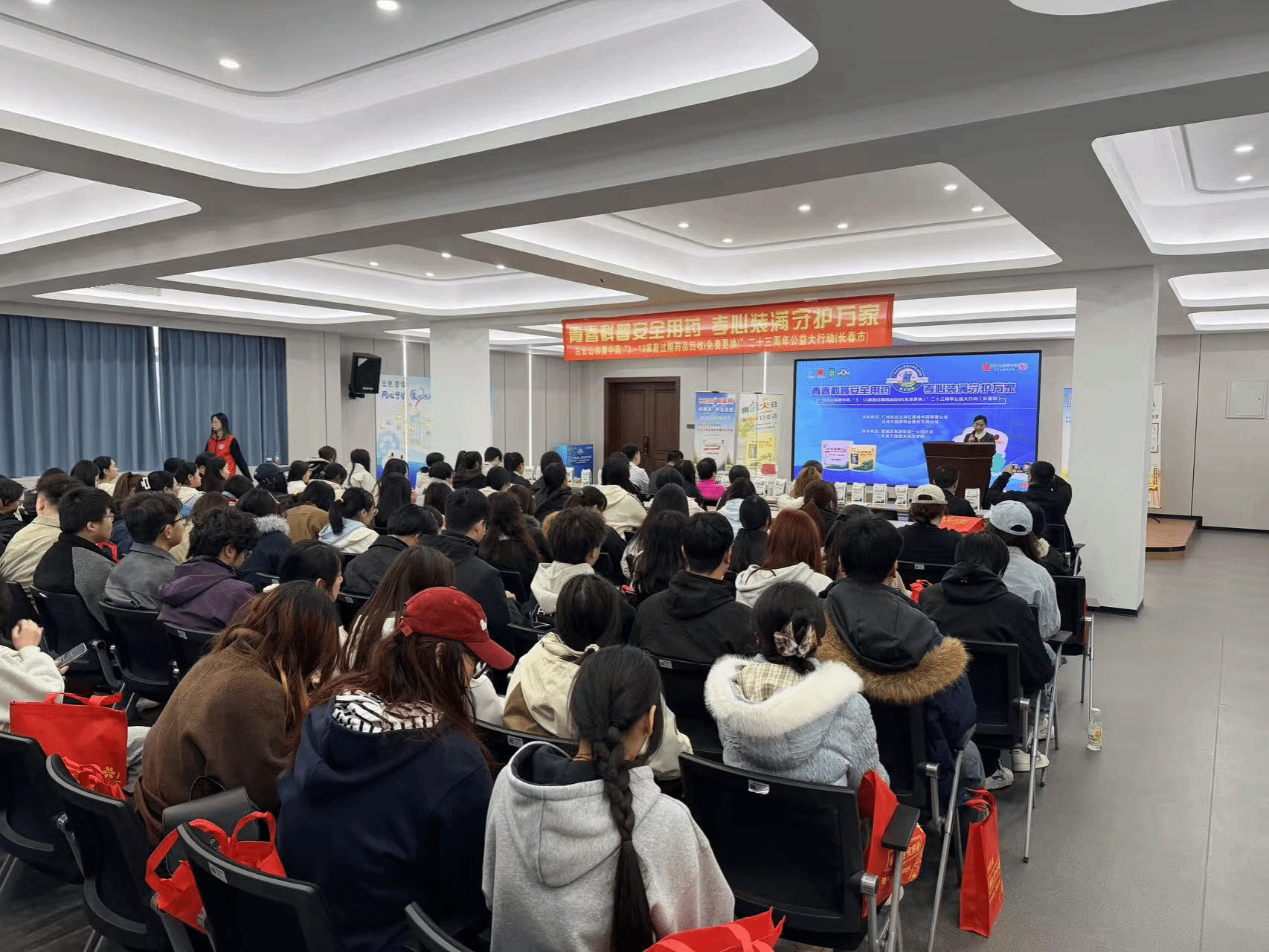 3月27日下午,吉林工程技术师范学院后勤基建处卫生所联合广州白云山和记黄埔中药有限公司、亚泰集团吉林大药房及宽城区凯旋街道一心街社区,在学校第一教学楼多功能厅举办了以“青春科普安全用药 孝心装满守护万家”为活动主题的广州白云山3·27家庭过期药品回收(免费更换)公益行活动。